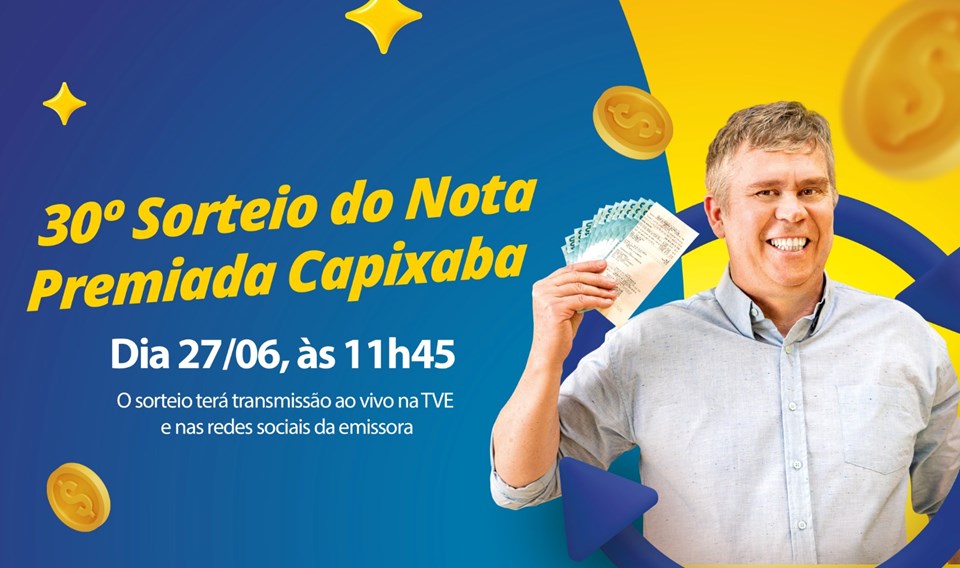 O Nota Premiada Capixaba realizará nesta quinta-feira (27) seu 30° sorteio mensal. Em mais de dois anos do maior programa de educação fiscal do Estado, já foram distribuídos R$ 9,8 milhões em prêmios aos cidadãos e às entidades sociais cadastradas. O sorteio do mês de junho acontecerá às 11h45, com transmissão ao vivo na TVE, na Rádio Espírito Santo e também nas redes sociais da emissora.
