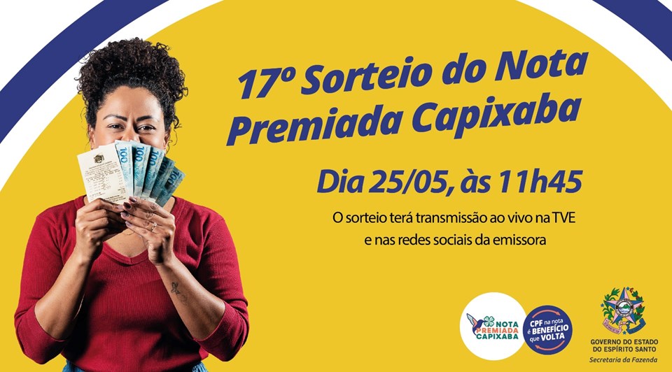 Já fez seu cadastro no Nota Premiada Capixaba? Então é hora de torcer para ser um dos ganhadores dos prêmios de até R$ 20 mil que serão sorteados nesta quinta-feira (25). O 17º sorteio do Nota Premiada Capixaba será transmitido ao vivo, às 11h45, na TVE Espírito Santo e pelas redes sociais da emissora.