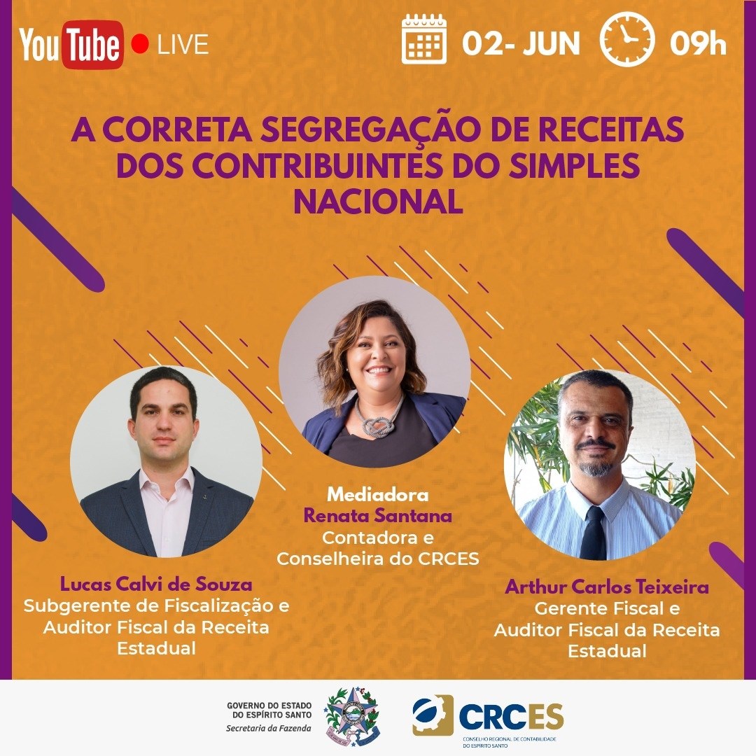Os auditores fiscais Arthur Carlos Teixeira Nunes e Lucas Calvi representarão a Secretaria da Fazenda (Sefaz) no evento sobre a Correta Segregação de Receitas dos Contribuintes do Simples Nacional. O debate, que vai acontecer nesta quarta-feira (02), está sendo organizado pelo Conselho Regional de Contabilidade do Espírito Santo (CRC-ES).