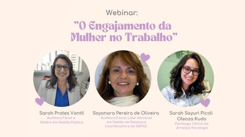 Entre as participantes estão a psicóloga Sarah Sayuri; a auditora fiscal e coordenadora do GDFAZ, Sayonara de Oliveira; e a auditora fiscal Sarah Vantil. "Vou falar um pouco sobre a minha história, desde a graduação em Engenharia Elétrica, um curso predominantemente masculino. Depois, quando engravidei durante o mestrado e vou concluir falando sobre o meu trabalho como auditora fiscal. Quando fui prestar concurso, tinha outra imagem do setor público. Achava que acabaria caindo em atividades repetitivas, burocráticas, mas foi totalmente diferente e hoje sou muito realizada", disse Sarah Vantil.