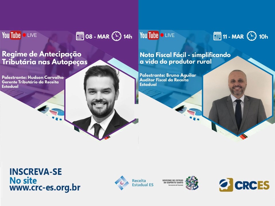 Representantes da Secretaria da Fazenda (Sefaz) vão participar, nos dias 8 e 11 de março, de duas lives organizadas pelo Conselho Regional de Contabilidade do Espírito Santo (CRC-ES). As transmissões terão como foco recentes alterações na legislação tributária do Espírito Santo.