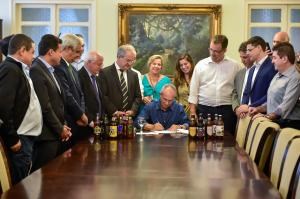Como forma de incentivo à geração de emprego e renda e ao desenvolvimento do agroturismo no Espírito Santo, o Governo do Estado encaminhou, nesta terça-feira (16), para a Assembleia Legislativa, projeto de lei que prevê a redução da alíquota do ICMS sobre a produção de cervejas artesanais. De acordo com a proposta, o percentual será reduzido de 27% para 12% neste ano. Na oportunidade, o governador Paulo Hartung explicou que o mercado de cerveja artesanal é crescente no Estado. "Precisamos de gente com capacidade e coragem de empreender. É necessário parar com a mentalidade de ser Estatal. Temos que focar no ato de empreender como vocês estão fazendo. É com alegria que enviamos esse projeto para Assembleia Legislativa. É disso que precisamos, de um Governo que não atrapalhe e apenas auxilie os empreendedores", destacou. A partir do início de 2018 a alíquota passará a ser de 17%, pois as cervejarias artesanais poderão ser incluídas no Simples Nacional. O projeto de lei foi assinado pelo governador Paulo Hartung e seguirá para apreciação da Assembleia. O objetivo é garantir a competitividade das cervejas artesanais produzidas no Espírito Santo e incentivar o desenvolvimento do setor para gerar emprego, renda e abrir nova oportunidade para o turismo. O secretário de Estado da Agricultura, Octaciano Neto, destacou que o setor de cerveja artesanal é uma forma de incentivo ao turismo no Espírito Santo e exemplo de economia criativa. “No Estado temos seis cervejarias registradas e mais de 600 pessoas que fazem a bebida artesanal por hobby. E todos estes são potenciais empresários. Durante muitos anos a cafeicultura foi a base do Espírito Santo, anos atrás foi a indústria do petróleo que ocupou esse espaço e agora se faz necessário uma economia diversificada, criativa. A política do governo não é exclusiva na questão tributária. Realizamos já neste ano o segundo workshop de cervejas, que reuniu mais de 200 pessoas, e estamos investindo em qualificação e crédito para o desenvolvimento do setor”, disse Octaciano. Para o secretário de Estado da Fazenda, Bruno Funchal, o projeto de lei tem como premissa a competitividade, a diversificação e o desenvolvimento da economia capixaba. "Entre os objetivos do projeto de lei está o aumento da competitividade do setor, tendo em vista que os estados vizinhos já têm uma alíquota reduzida, variando entre 8 e 12%. Isso vai ajudar a diversificar a produção econômica de nosso Estado e tem uma sinergia com desenvolvimento do turismo", afirmou. O secretário de Estado de Desenvolvimento, José Eduardo Azevedo, destacou que a desoneração para a produção de cervejas artesanais servirá de impulso ao setor neste ano, já que no próximo os produtores estarão incluídos no Simples e será igualada a competitividade com outros estados. "É uma demanda que veio pela Secretaria de Agricultura, mas que envolveu a área do desenvolvimento econômico e da Fazenda. Procuramos construir uma proposta de lei discutindo com o setor e que teve como referência o que é adotado em outros estados. O objetivo é tornar nosso setor competitivo, principalmente nesse período de início da atividade, que está crescendo e se consolidando no Estado", explicou. Representando a Assembleia Legislativa, o deputado Doutor Hércules Silveira destacou o leque de oportunidades que a economia criativa abre. "No caso da cerveja artesanal ela gera cultura, emprego e renda. É um povo que quer mostrar a força do Espírito Santo. O presidente da Associação dos Cervejeiros Artesanais do Espírito Santo (Acerva-ES), Sandro Rizzato, disse que a iniciativa do governo é um grande passo para os cervejeiros. “Pela Acerva-ES queremos agradecer a iniciativa, que é importante para o crescimento da cerveja artesanal. Ela traz cultura e fomenta a atividade de turismo. O Espírito Santo tem potencial de turismo muito grande. A cerveja artesanal acrescenta as opções. Nessa assinatura temos 13 cervejarias representadas. É um passo para termos a rota das cervejas do Estado”, afirmou. O Presidente do Sindicato da Indústria de Bebidas em Geral do Estado do Espírito Santo (Sindibebidas), Sérgio Rodrigues da Costa, comemorou o incentivo ao setor. “É importante ter esse apoio para garantir a competição em igualdade com outros estados”. Informações à imprensa: Assessoria de Comunicação SEAG Pedro Callegario pedro.seages@gmail.com (27) 3636-3651 (27) 9 8849-9814 Cecília Leite cecilia.seages@gmail.com (27) 3636-3651 (27) 98852-4622 Assessoria de Comunicação da Sefaz Loureta Samora (27) 3347-5128 / 99746-9479 loureta.samora@sefaz.es.gov.br
