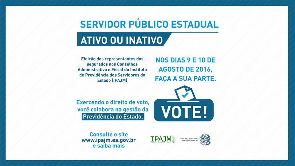 Cerca de 70 mil segurados do Regime Próprio de Previdência dos Servidores do Estado do Espírito Santo (ES-Previdência) - servidores ativos civis e militares e os inativos - terão a oportunidade de eleger seus representantes para atuar nos Conselhos Administrativo e Fiscal do Instituto de Previdência do Estado (IPAJM). Isso porque, de acordo com o edital eleitoral nº 01/2016, publicado nesta segunda-feira (20), nos dias 9 e 10 de agosto será realizada a eleição dos novos membros que farão parte desses colegiados. A votação será facultativa. “Os segurados estão convidados a participar deste pleito, de forma democrática, exercendo o seu direito ao voto. Dessa forma, eles poderão escolher seus representantes que terão um papel muito importante nos novos rumos da previdência estadual”, disse o presidente executivo do IPAJM, Bruno Margotto Marianelli. Os segurados interessados em concorrer às vagas dos Conselhos devem comparecer à Central de Atendimento (CAT) da autarquia até o dia 6 de julho, prazo final, para formular solicitação por escrito. Na ocasião, é necessário que eles estejam munidos de documentos de identificação, sendo cópias autenticadas ou simples (acompanhado do documento original), entre outros previstos no Edital. A CAT está localizada na Avenida Cezar Hilal, nº 1345, Santa Lúcia, em Vitória. De acordo com o Decreto nº 2495-R, de 7 de abril de 2010, alterado pelos Decretos nº 3332-R/2013 e nº 3978-R/2016, que regulamenta esse pleito, é considerado: • aposentado ou inativo - todo e qualquer segurado, civil ou militar, que até 30 (trinta) dias antes da publicação do Edital convocatório das eleições já tenha seu vínculo alterado pelo respectivo setor de Recursos Humanos para fins de aposentadoria, reforma ou reserva”; • servidor ativo civil - os servidores públicos civis titulares de cargo de provimento efetivo, ainda que cedidos ou em disponibilidade, e os estáveis no serviço público, dos Poderes Executivo, Judiciário e Legislativo, e; • servidor militar ativo - todos os servidores públicos, também ocupantes de cargo de provimento efetivo, vinculados à Polícia Militar e ao Corpo de Bombeiros. Destaca-se, ainda, que segundo o edital que trata da eleição, “somente poderão participar do processo eleitoral os servidores nomeados que entrarem em exercício até 30 dias antes da publicação do Edital Convocatório”. Processo eleitoral No total, serão eleitos três membros para cada um dos Colegiados, bem como os seus respectivos suplentes, conforme abaixo: VAGAS Conselho Administrativo 1 (um) representante TITULAR dos servidores ativos civis + 1 (um) representante SUPLENTE dos servidores ativos civis 1 (um) representante TITULAR dos servidores ativos militares + 1 (um) representante SUPLENTE dos servidores ativos militares 1 (um) representante TITULAR dos servidores inativos + 1 (um) representante SUPLENTE dos servidores inativos Conselho Fiscal 1 (um) representante TITULAR dos servidores ativos civis + 1 (um) representante SUPLENTE dos servidores ativos civis 1 (um) representante TITULAR dos servidores ativos militares + 1 (um) representante SUPLENTE dos servidores ativos militares 1 (um) representante TITULAR dos servidores inativos + 1 (um) representante SUPLENTE dos servidores inativos Eleitores do Poder Executivo O processo de votação será realizado de forma digital, para todos os eleitores do Poder Executivo. Eles irão votar por meio do Portal do Servidor, no endereço eletrônico - https://sistemas.es.gov.br/seger/eservidor/Login - utilizando o número funcional e a senha do servidor, devendo, obrigatoriamente, votar em um membro para cada conselho ou em branco. Caso o aposentado tenha perdido a senha ou ela esteja inválida, é possível gerar um novo código clicando no link Criar/Lembrar Senha, que está abaixo do campo “Nº Funcional”. Basta aguardar a nova senha que será gerada e encaminhada para o e-mail cadastrado no Sistema Integrado de Administração de Recursos Humanos do Estado (Siarhes). Aqueles que não estão com e-mail cadastrado nesse Sistema, ou que alteraram o endereço eletrônico, devem solicitar a devida atualização de seu e-mail. Há duas maneiras: comparecendo pessoalmente na Central de Atendimento do Instituto, ou por meio do envio do formulário abaixo, devidamente preenchido, para o e-mail da subgerência de Cadastro e Tempo de Contribuição (SCT) do Instituto, que é sct@ipajm.es.gov.br. Em caso de dúvidas, basta entrar em contato pelo 0800-2836640. Já no caso dos ativos, o servidor deve procurar diretamente a Central de Atendimento ao Servidor (CAS), na Secretaria de Estado de Gestão e Recursos Humanos (Seger), na Avenida Governador Bley, 236, Edifício Fábio Ruschi, no Centro de Vitória. O horário de atendimento é de segunda a sexta-feira, das 9 às 18 horas. Os telefones da CAS são (27) 3636-5292 e 3636- 5293. Eleitores dos outros Poderes Já os segurados vinculados aos Poderes Legislativo, Judiciário, bem como ao Tribunal de Contas e ao Ministério Público Estadual, terão que votar por meio de cédulas. O documento será enviado, pelo IPAJM, via Correios, à residência de cada um. O retorno da correspondência não terá custos para o servidor. Para votar, o eleitor deverá levar em consideração a categoria a qual esteja vinculado. “Caso ele seja, por exemplo, servidor ativo militar, o seu voto será em um dos candidatos titulares representantes dos militares ativos, e em um dos concorrentes à vaga de suplente, que também deve ser representante dos militares ativos”, explica o presidente da Comissão Eleitoral do IPAJM, Sérgio Renato da Silva. Além disso, o Presidente dá outras orientações importantes. “Os eleitores que possuírem um vínculo ativo e outro inativo terão direito a 2 (dois) votos, um para cada categoria a qual pertence, e os que possuírem dois vínculos ativos ou dois vínculos inativos somente terão direito a únic