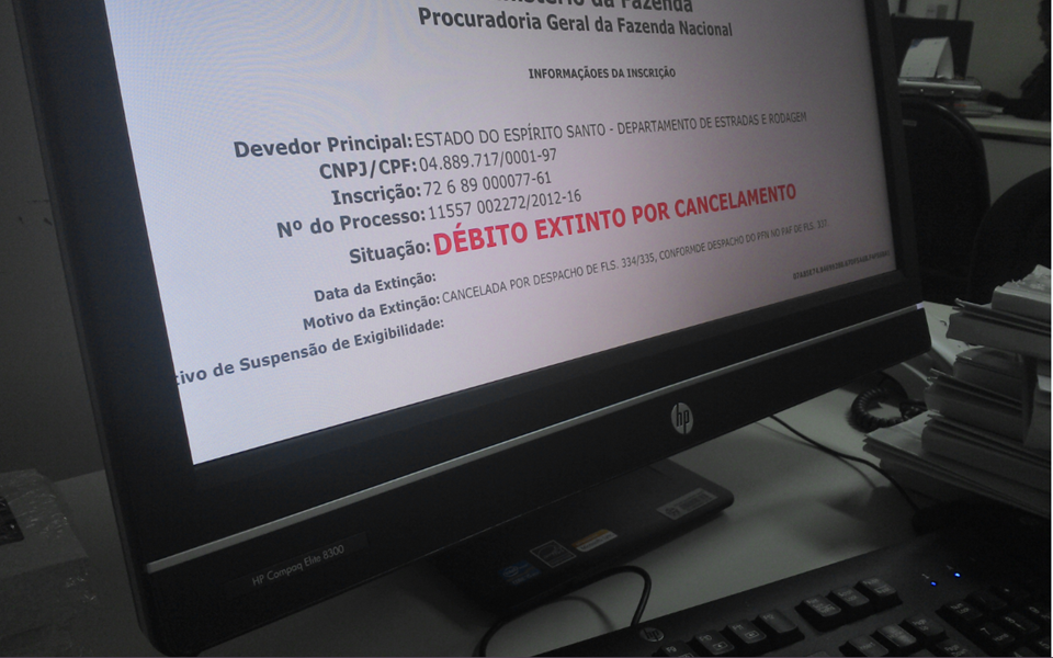 A Secretaria de Estado da Fazenda (Sefaz), por meio do Tesouro Estadual, coordenou um trabalho que resultou em economia de R$ 48 milhões para o cofre público estadual, graças a levantamentos realizados pela equipe do Tesouro, um débito com a União inscrito em Dívida Ativa e já com determinação judicial para pagamento foi extinto. O débito tinha sido gerado porque a União não reconheceu o pagamento de um empréstimo contratado com o extinto Departamento Nacional de Estradas e Rodagem (DNER). As operações tinham sido contratadas pelo Departamento Estadual de Estradas e Rodagem do Espírito Santo (DER) na década de 70. No ano passado, a Procuradoria Geral da Fazenda Nacional (PGFN) chegou a conseguir uma decisão judicial que determinava o pagamento dessa dívida - após atualização monetária, o montante a ser pago em precatórios seria de R$ 48 milhões. Porém, esta semana o Tesouro Estadual recebeu a confirmação de que o débito com a PGFN foi extinto. O Tesouro Estadual fez todo o trabalho de pesquisa e de levantamento de informações que possibilitaram comprovar que o Estado havia quitado o empréstimo, levando à extinção do débito. A Procuradoria Geral do Estado (PGE), por meio da Procuradoria de Execução e Precatório, prestou relevante contribuição com as medidas jurídicas para extinguir a execução fiscal. A subsecretária, Dineia Barroso, explica que esta é uma das conquistas que comprovam o retorno para o Estado dos investimentos realizados na capacitação da equipe do Tesouro. “Esses profissionais implantaram uma sistemática que permite o monitoramento eletrônico de quaisquer tipos de notificações de cobranças fiscais realizadas contra os atuais duzentos CNPJs que integram a Administração Pública Estadual, além da modernização no controle do endividamento público. É possível antever problemas e encontrar soluções para todas as cobranças realizadas pela Fazenda Nacional”, disse a subsecretária.